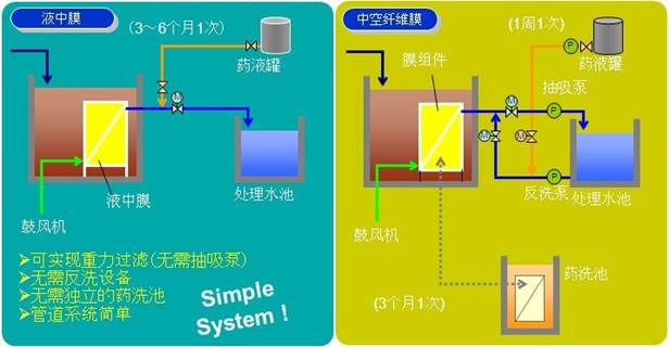 液中膜(平板膜)和中空纤维相比,辅助设备更少,系统构造更为简单。当然,运行管理,维护保养也很简易。